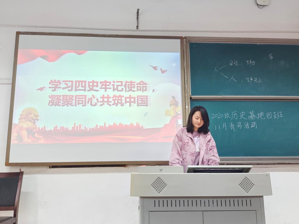 (通讯员 王可儿)为坚定理想信念,践行初心使命,11月16日中午,永利集团3044官网欢迎您2020级历史基地四班青马中心小组在历文院307教室开展了主题为“学习四史牢记使命,凝聚同心共筑中国”的学习交流会。本次活动由2020级历史基地四班青马中心小组组长王可儿主持,青马中心小组全体人员参加。
