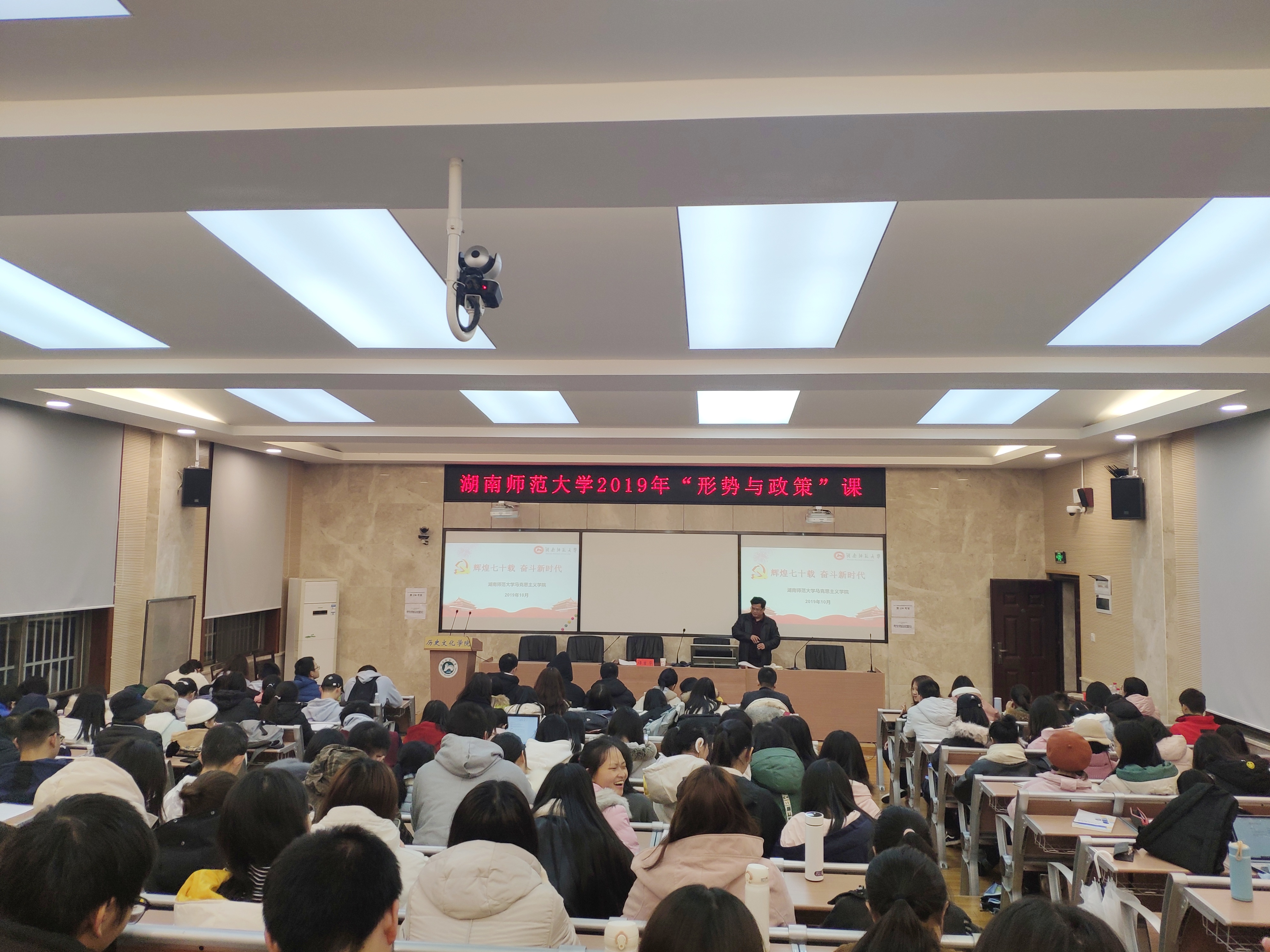 (通讯员 李湘 李博雅)11月26日晚,为响应教育部号召,庆祝新中国成立70周年,永利集团3044官网欢迎您于203学术报告厅召开“辉煌七十年,奋斗新时代”为主题的“形势与政策”讲座。永利集团3044官网欢迎您马克思主义学院老师谭吉华莅临历文院,作为此次讲座的主讲人。历文院19级辅导员兼学工办老师陈卓君,19级全体同学参加。19级年级团支书涂铭主持此次讲座。