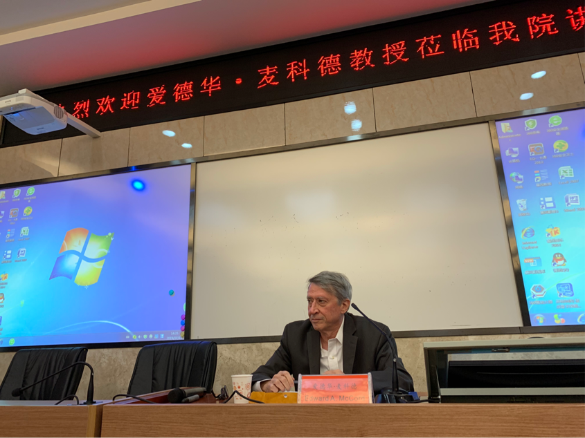 爱德华·麦科德教授以个人角度解读了中美关系发展的历史、现实与未来。他指出,中美关系间的矛盾并非由特朗普出任总统后才出现,此前的外交、经济交往中留下的隐患在今天依旧存在,且长期影响着中美两国人民的思想观念。在中国经济发展过程中,意识形态的差异使双方对中国融入经济贸易体系持不同观点,因此也产生了“中国威胁论”一类的诸多误会。麦科德教授认为,经济不是影响中美关系的唯一因素,但有增加的趋势,而特朗普的就职无疑增加了中美交往前景的不确定性,近阶段华为事件、中美贸易战等例都体现了这点。贸易战问题更是影响深远,中美贸易逆差和美国工厂的不断迁移引起世界的广泛关注,一度造成双方关系的紧张。但总体来说,贸易战既造成美国国内物价上涨,对世界经济也有严重破坏性,因此中美合作的声音仍占主流。