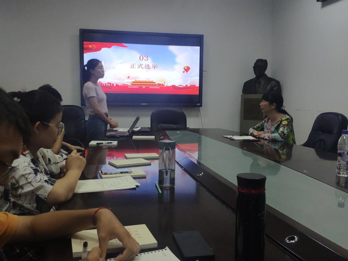 随后,大会严格遵守《中国共产党章程》和《中国共产党基层组织选举工作暂行条例》的有关规定,采取无记名投票差额选举的办法选举产生支部委员。竞选者邱亚、彭琼霞、魏立艳、涂浩、张开经过严密公正的计票唱票分别获得了7票、8票、8票、1票、8票。新一届党支部委员会由党支部书记邱亚、党支部副书记彭琼霞、组织委员魏立艳、宣传委员张开组成。