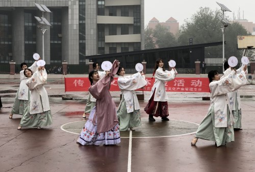 活动在文管专业同学的古典歌舞表演中拉开帷幕。通过“礼仪之邦”表演展现我国传统礼仪文化,同时在场地内设置投壶射覆、擂茶体验、九连环扣、糍粑制作、甜酒品尝、灯笼脸谱绘制、制作香囊以及剪纸艺术等体验活动。