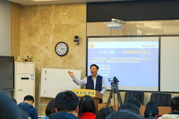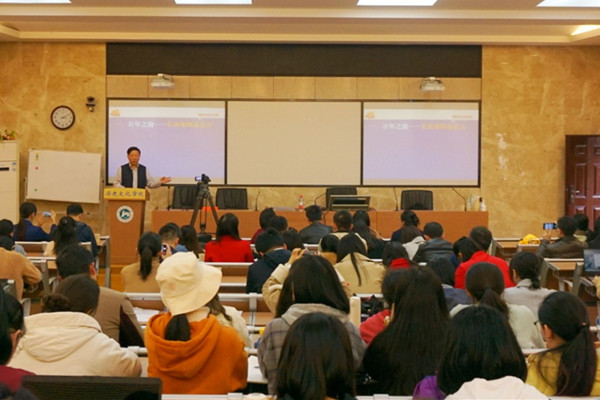 活动第一阶段为学“四史”专题讲座。张志初以“领航百年正青春”为主题,以党史百年之前的中国近代史为开端和背景,生动讲述了党成立之前的民族奋斗史。接着,在“雄关漫道真如铁”的百年之路中,张志初讲述了许多党史故事,如建党伟业的“四条船”、毛泽东的“五次挥手”,通过走进这些历史细节,老师和同学们感悟了党民一心的建国、立国、强国之路。最后,张志初以“人间正道是沧桑”的百年之悟为结尾,激励大家心怀忧患意识,踏实奋斗。通过此次讲座,老师与同学领略到学习“四史”的方法,也领略到学“四史”给人带来的智慧启迪和信仰力量。