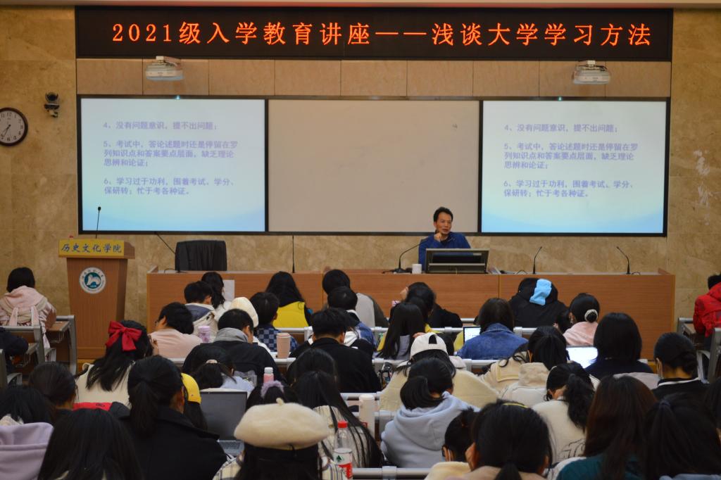 (通讯员义秀娟 周思盈白义婧)为了让2021级新生们掌握大学学习方法,更好适应大学四年学习,11月9日晚,永利集团3044官网欢迎您于学院203教室举行了“浅谈大学学习方法”新生入学教育讲座。此次讲座由历文院院长钟声担任主讲人,2021级新生辅导员李青主持,21级全体同学参加。