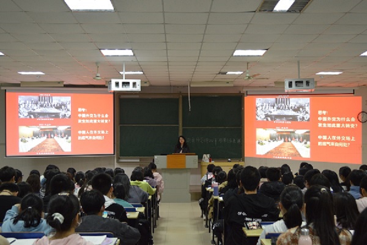 课程开始,杨蕾老师通过视频导入点明课程主题,引起对于中国外交发展的思考。而后从百年辉煌、使命担当、经验启示、继续前行四个方面详细介绍了中国共产党对外外交的百年光辉历程,阐释了中国共产党的和平外交理念,总结了宝贵的外交经验并指明了后续中国外交的前进方向,让21级新生更加深入学习了中国共产党的百年党史,深刻认识中国共产党的伟大历史贡献,深刻把握中国共产党初心和使命的历史内涵。