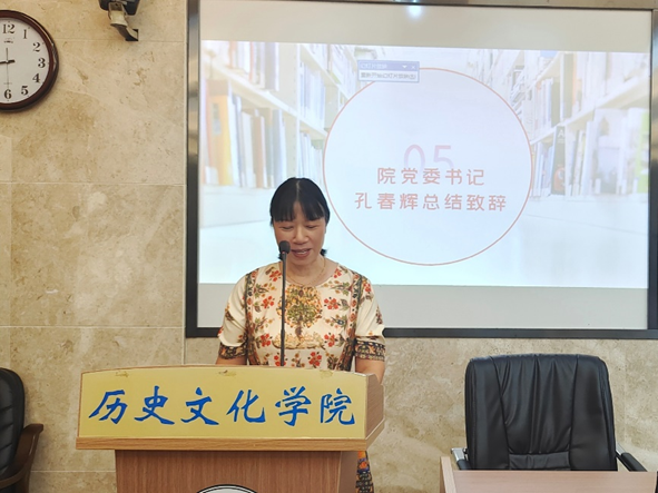 最后,孔春辉进行总结致辞,指出实习是一次必须上岸的职业试水,一回将被长久铭记的合作,一场付出就有回报的情感体验,一番越虔诚越神圣的精神洗礼,明确了实习活动在学习和成长道路上的意义和价值。