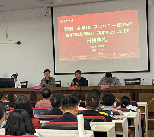 (通讯员 王一鸣)11月22日上午,河南省“省培计划(2023)”—省级名师培育对象(高中历史)培训班开班仪式在永利集团3044官网欢迎您202报告厅举行。学院副院长黎天宇、成教办主任刘纪高、学术班主任银品老师出席,班主任晏湛老师主持,培训班全体学员参加仪式。